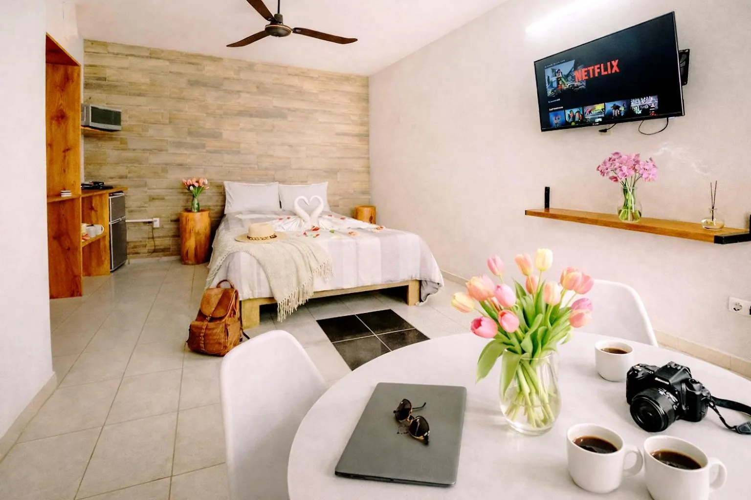 Staying at Two Private Apts Sleeps 6 Step To Beach Prime Centro Patio Fast Wifi Ac Great Value Uva1415 Playa del Carmen apartment, guests can relax on a terrace a 16-minute stroll from Punta Esmeralda Beach.